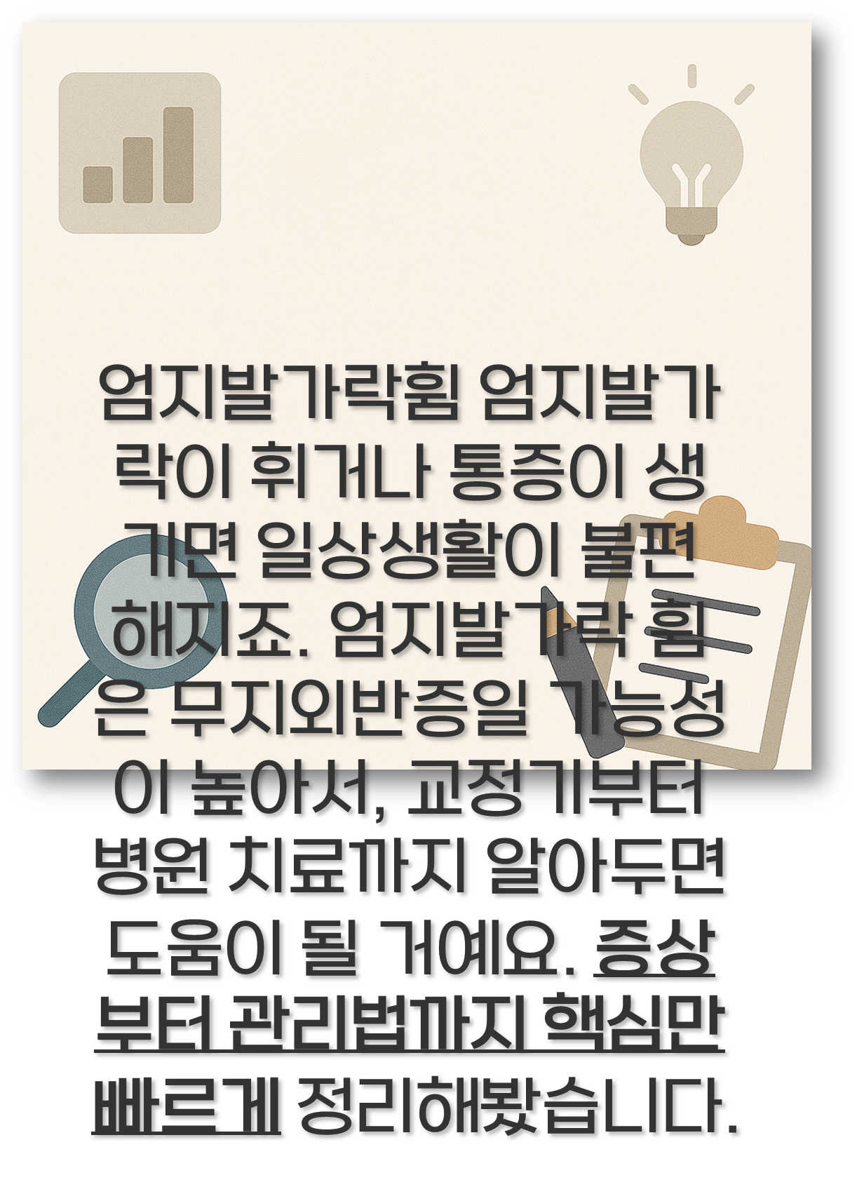 엄지발가락휨 엄지발가락이 휘거나 통증이 생기면 일상생활이 불편해지죠. 엄지발가락 휨은 무지외반증일 가능성이 높아서, 교정기부터 병원 치료까지 알아두면 도움이 될 거예요. 증상부터 관리법까지 핵심만 빠르게 정리해봤습니다.